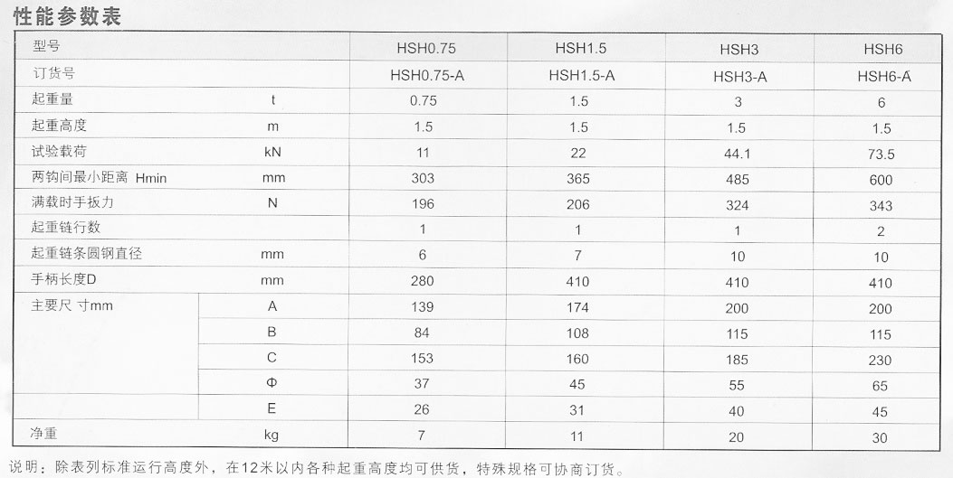 | HSH型3噸手扳葫蘆技術參數(shù): | |