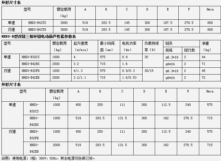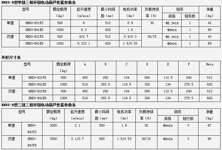 | 環鏈電動葫蘆HHXG-B型0.5-5T可分為四種:HHXG-B型單鏈三相環鏈電動葫蘆、HHXG-B型雙鏈三相環鏈電動葫蘆、HHXG-B型三鏈三相環鏈電動葫蘆、HHXG-B型四鏈三相環鏈電動葫蘆。 本產品具有質量輕、高效率、低能耗、安全性高的特點,主要零部件均采用優質鋼材制造,確保了環鏈電動葫蘆的安全性和堅固性。 |