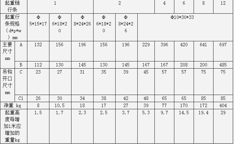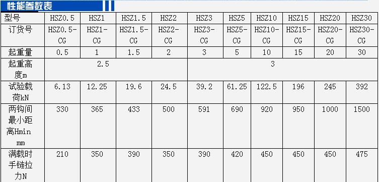 飛鴿HSZ-CG類5噸手拉葫蘆參數(shù): | |