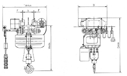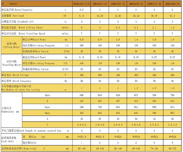 | 電動小車式環(huán)鏈電動葫蘆HHBD-B型參數(shù)圖: | |